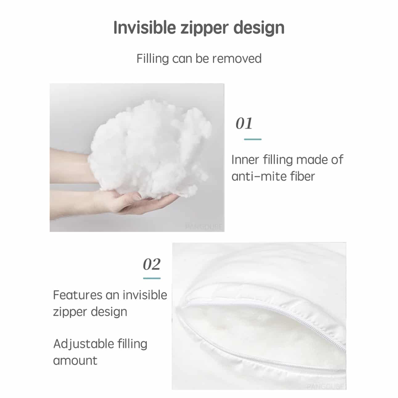 • High-elasticity polyester fiber filling rebounds quickly within two seconds