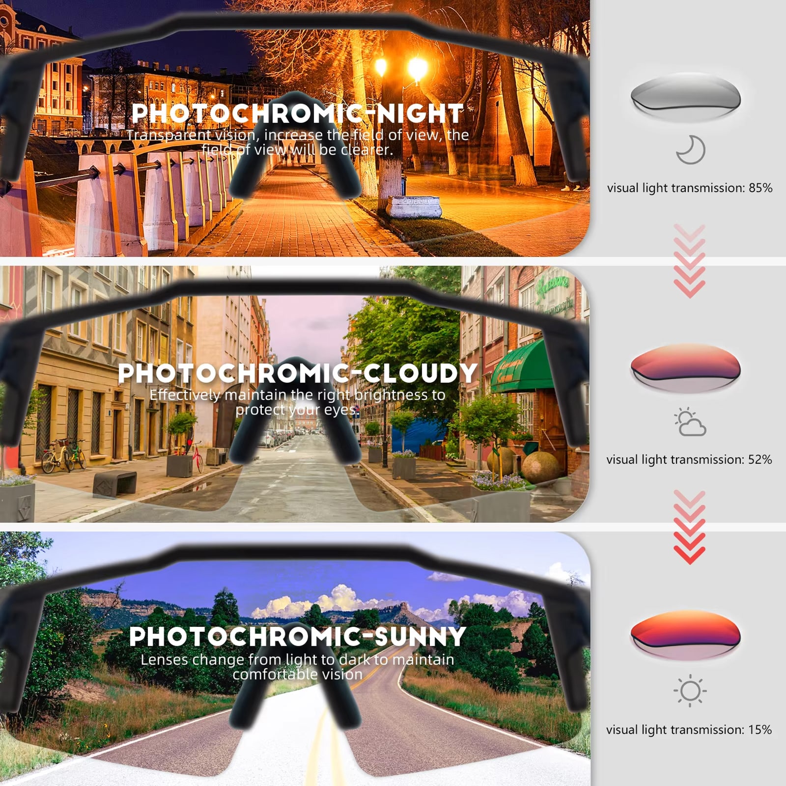 These sunglasses transformed my cycling experience! The photochromic lenses adjust perfectly through tunnels and bright roads. After six months of daily use, they still look brand new. Best investment for serious riders.