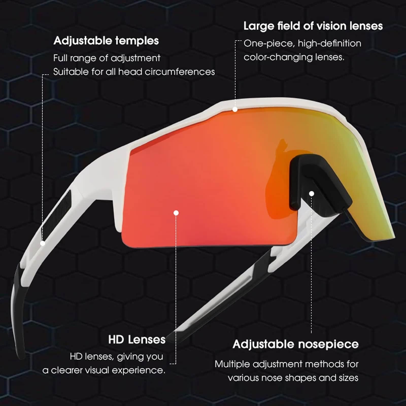 Engineered for multi-sport versatility across cycling, running, fishing, driving, and golf. The wraparound design and secure fit perform flawlessly whether you’re sprinting uphill, casting lines, or navigating highway traffic at high speeds.
