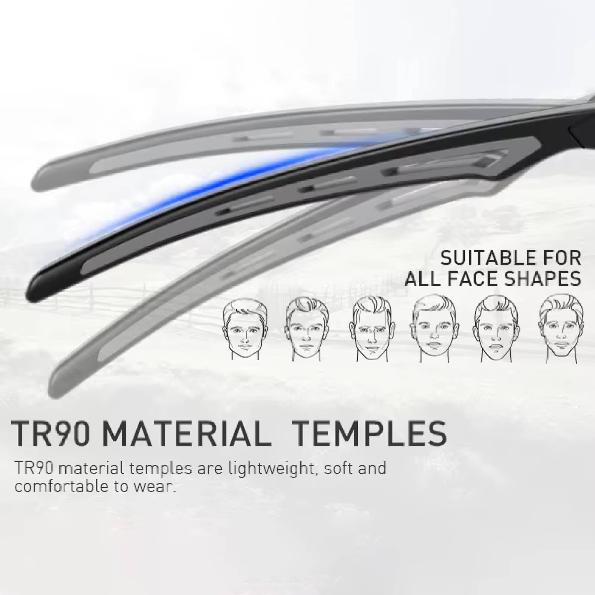 TR90 material offers exceptional flexibility, durability, and lightweight properties while maintaining shape memory and impact resistance.