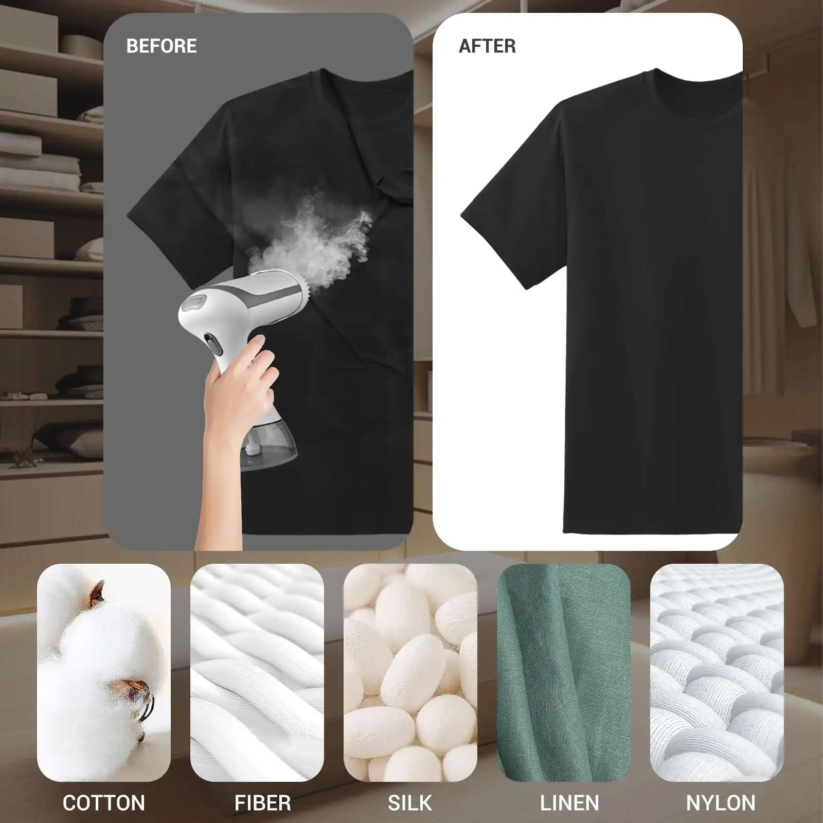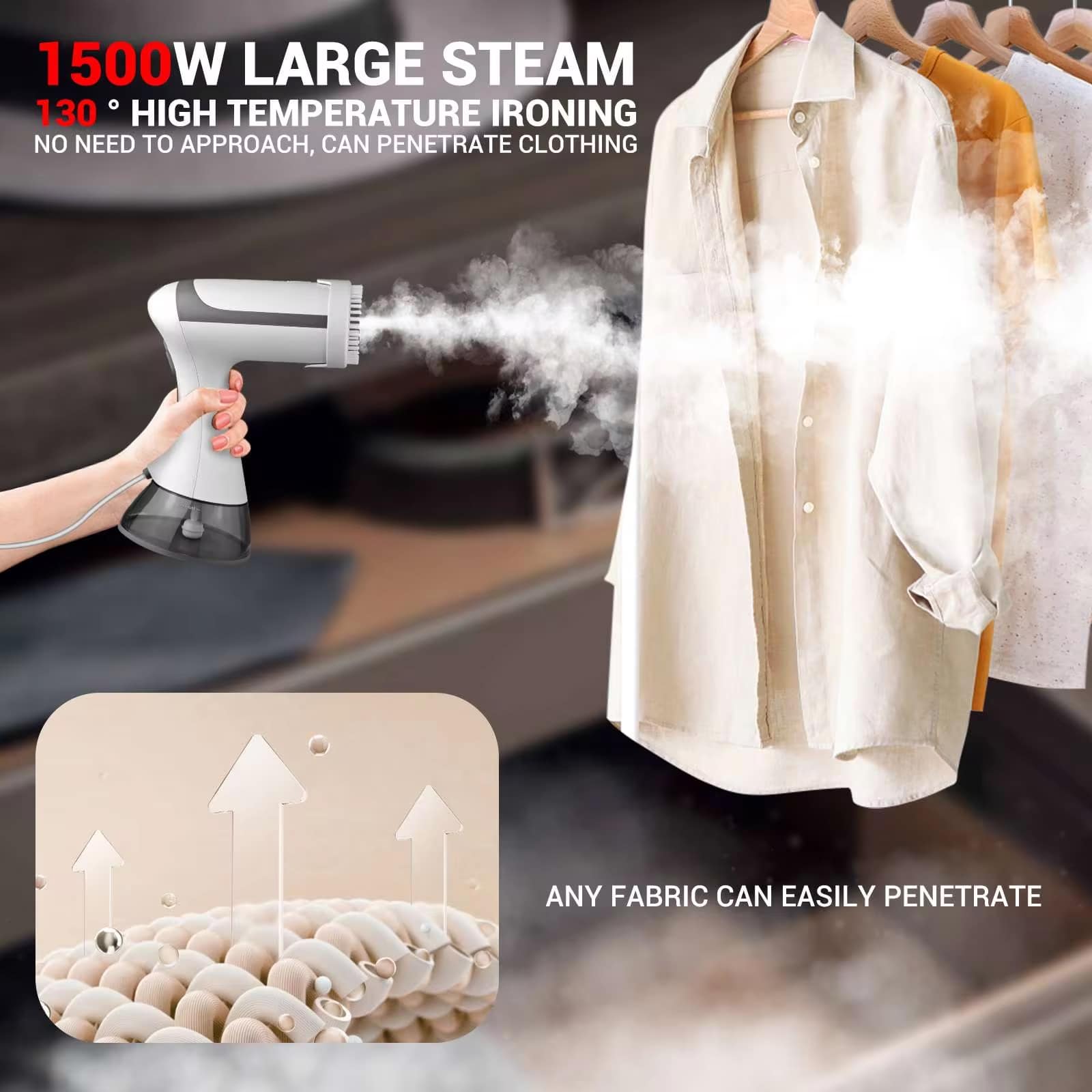 The steam reaches approximately 212°F (100°C), hot enough to remove wrinkles and kill bacteria while remaining safe when used properly with reasonable distance from skin.